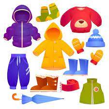 zoals bijv. regenlaarzen en regenjas / zonnehoedje, zwemkleding en waterschoentjes / sneeuwlaarzen, wanten, sjaal en muts